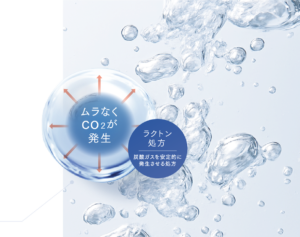 エニシーグローパックでは、ラクトン処方により、炭酸ガスが無駄なく安定して発生するようになっています。