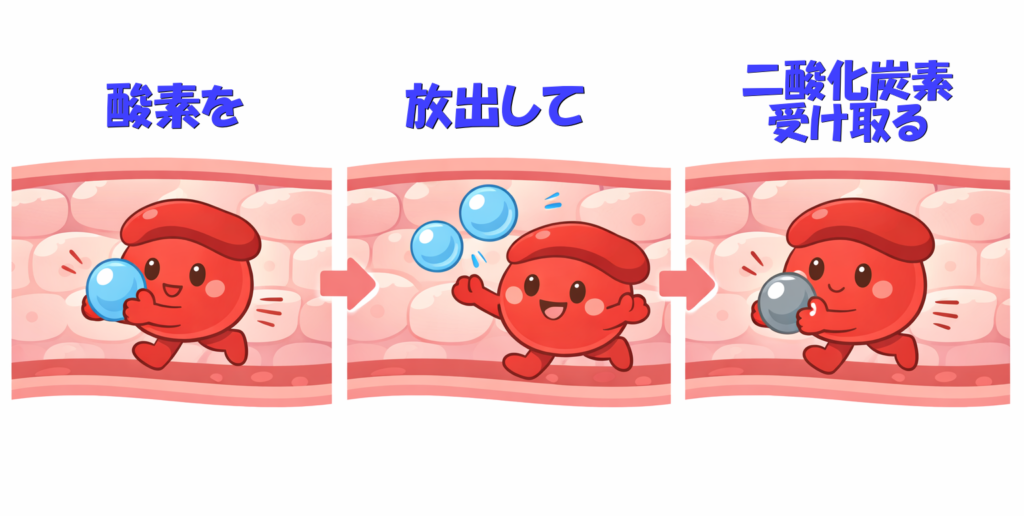 そうなると、血液中にあるヘモグロビンは酸素を肌に放出し、かわりに炭酸ガスを引き取ってくれます。