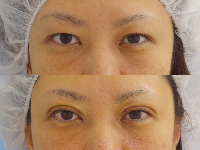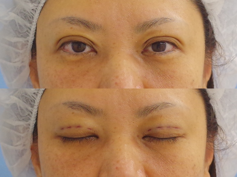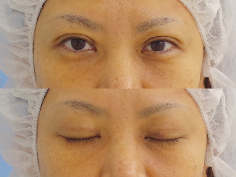 この症例の方は、もともとは二重でしたが、左右で幅の違いが結構あり、またたるみでまつ毛に被さるようになってきたとのことでご相談に来られました。